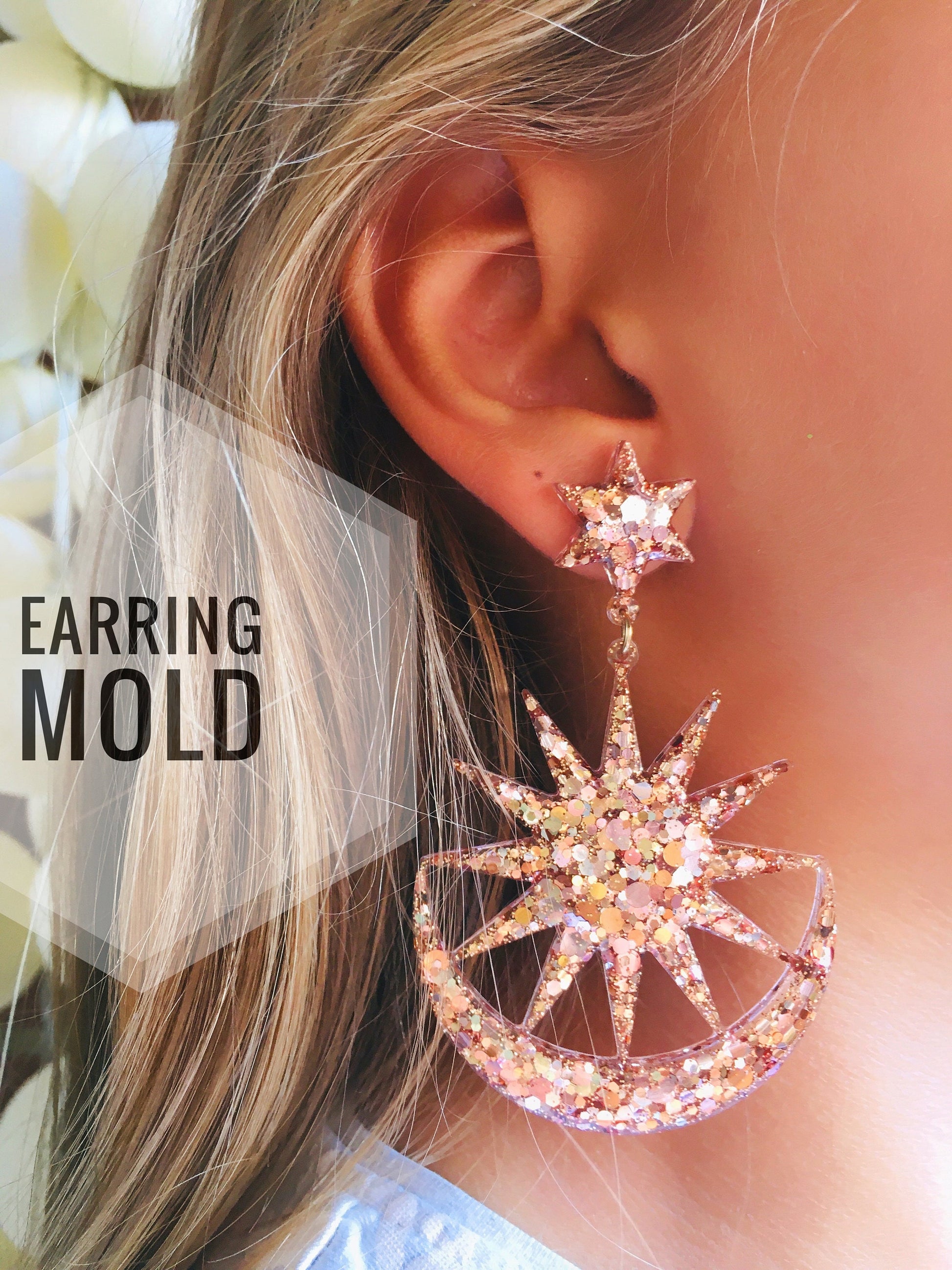 This listing is for the silicone mold ONLY. The earrings shown in the picture is only to give you an idea of the finished piece.