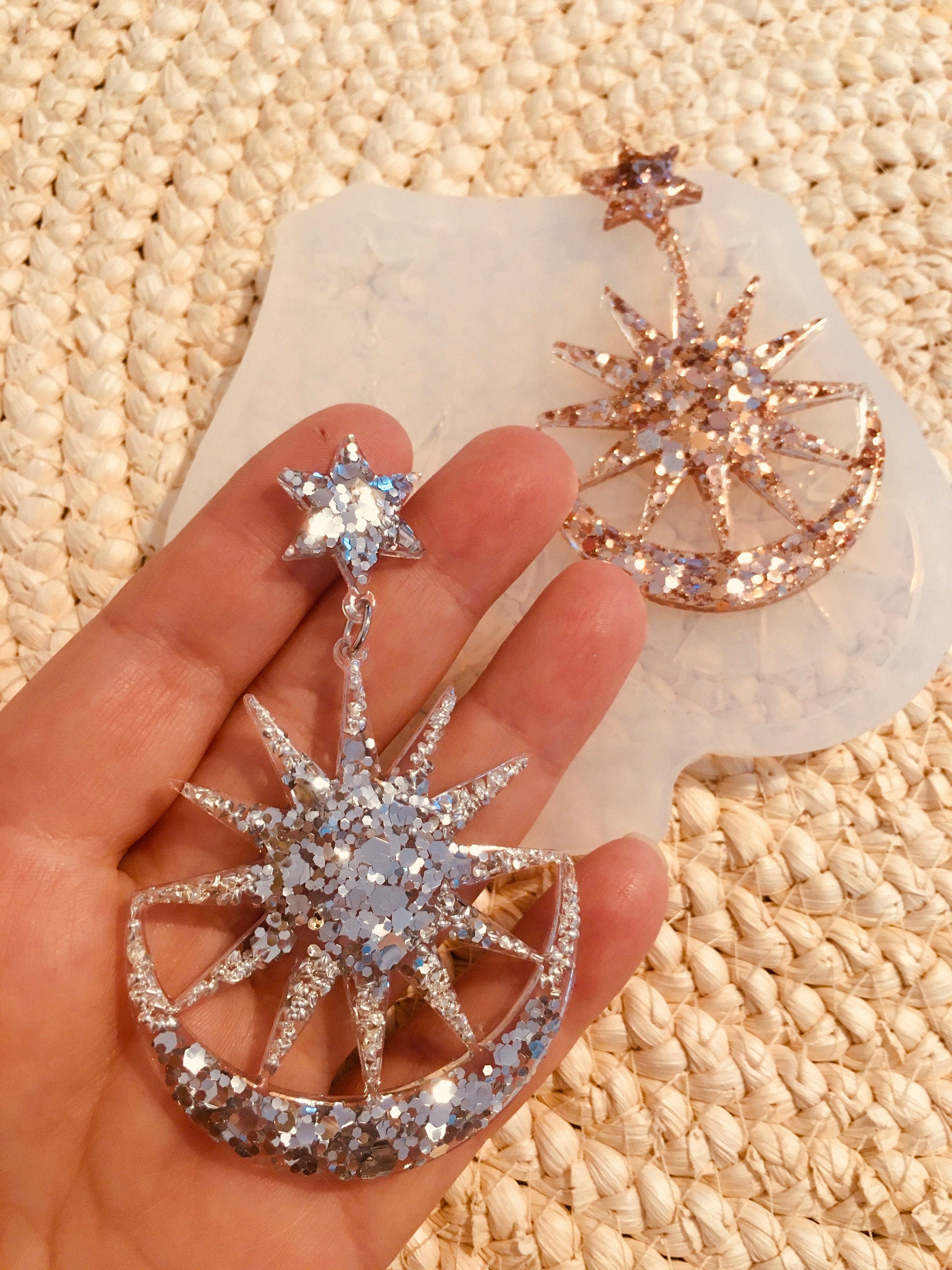 Set earrings crescent moon and star Silicone mold